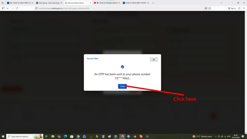 ଏହି ପେଜ୍ ରେ ଆସିବା ପରେ (Close ) କ୍ଲୋଜ ଉପରେ କ୍ଳିକ କରନ୍ତୁ I ଏହାପରେ ତଳେ ଦିଆ ଯାଇଥିବା ପେଜ ଟି ଖୋଲି ଯିବ I