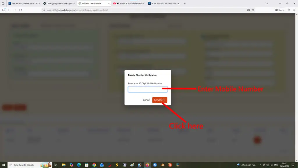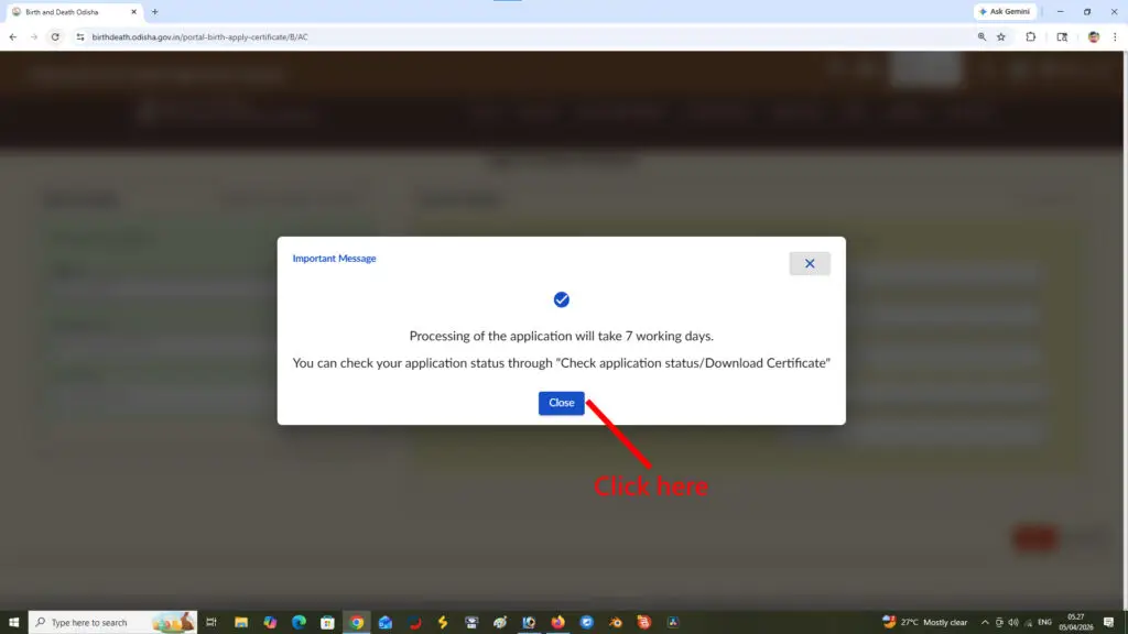 ଜନ୍ମ ସାର୍ଟିଫିକେଟ ଟି ଆବେଦନ କରିବା ବେଳେ Online Birth Services ରେ ହିଁ ସିଲେକ୍ଟ ହୋଇଥିବା ଆବଶ୍ୟକ ଏବଂ Apply Certificate ଉପରେ କ୍ଲିକ କରନ୍ତୁ I ଏହାପରେ ତଳେ ଦିଆ ଯାଇଥିବା ପେଜ ଟି ଖୋଲି ଯିବ I