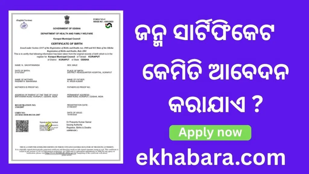 ଓଡ଼ିଶାରେ ଜନ୍ମ ସାର୍ଟିଫିକେଟ୍ (Birth Certificate) ପାଇଁ ଆବେଦନ କରିବା ଏବେ ବହୁତ ସହଜ ହୋଇଯାଇଛି। ଆପଣ ଏହାକୁ ଉଭୟ ଅନଲାଇନ୍ ଏବଂ ଅଫଲାଇନ୍ ମାଧ୍ୟମରେ କରିପାରିବେ।