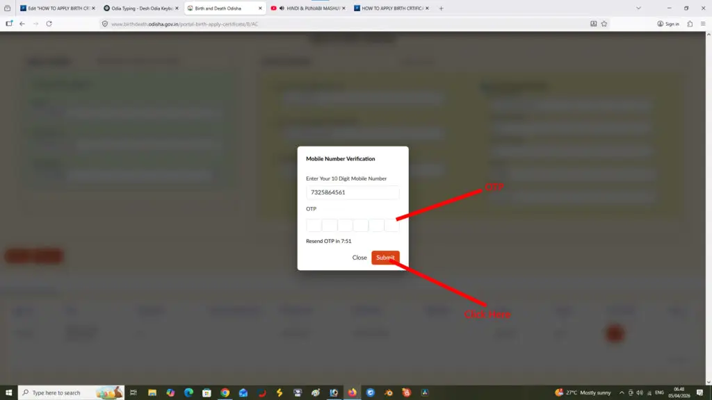 ଏଠାରେ ଆସିଥିବା OTP ଟି ଦିଅନ୍ତୁ ଏବଂ Submit ଉପରେ କ୍ଲିକ କରନ୍ତୁ I ଏହାପରେ ତଳେ ଦିଆ ଯାଇଥିବା ପେଜ ଟି ଖୋଲି ଯିବ I